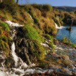 The restaurant, with a wide outdoor facility, overlooks the waterfalls with the romantic valley. The few buildings arranged around the access to the riverside, the falls and the meadows are almost too small to call it a village, but the people located within the municipality of Obrovac, might think differently. A tiny Dalmatian stone house has a water mill with a single grinding stone inside. There are no paddles anymore to drive the stone, but one can still imagine when the people worked their grains to have flour (brašno) to bake bread (kruh).